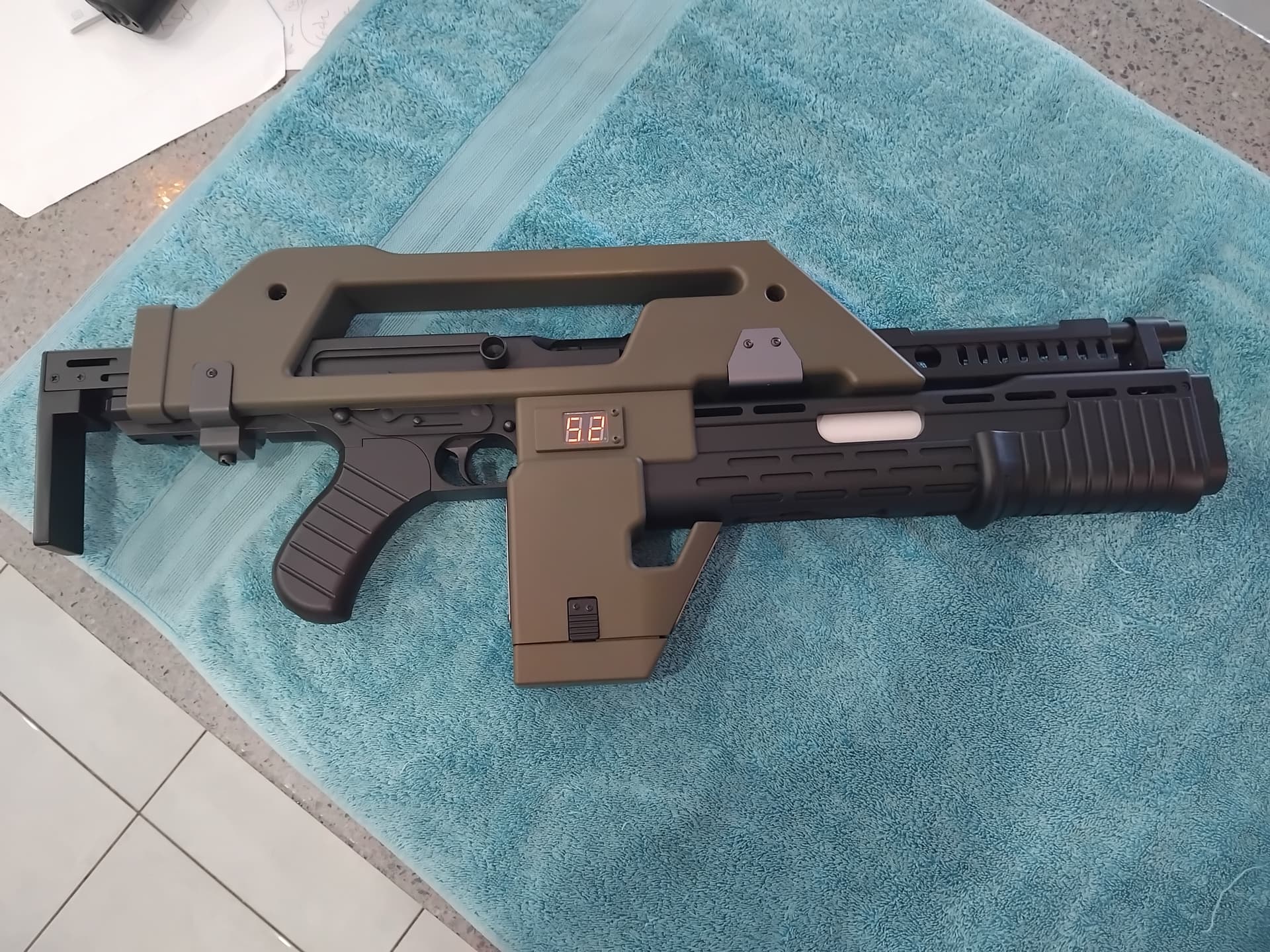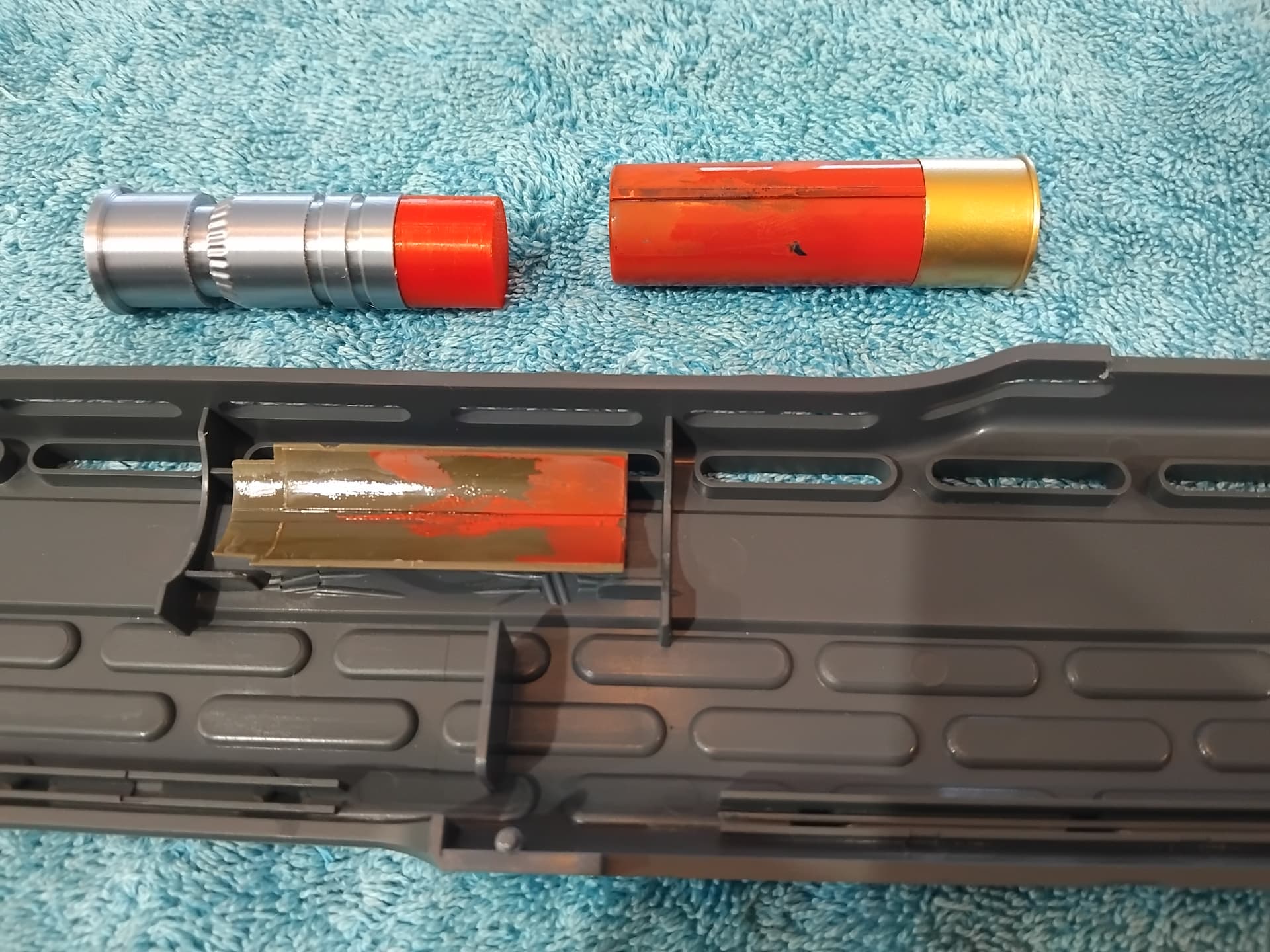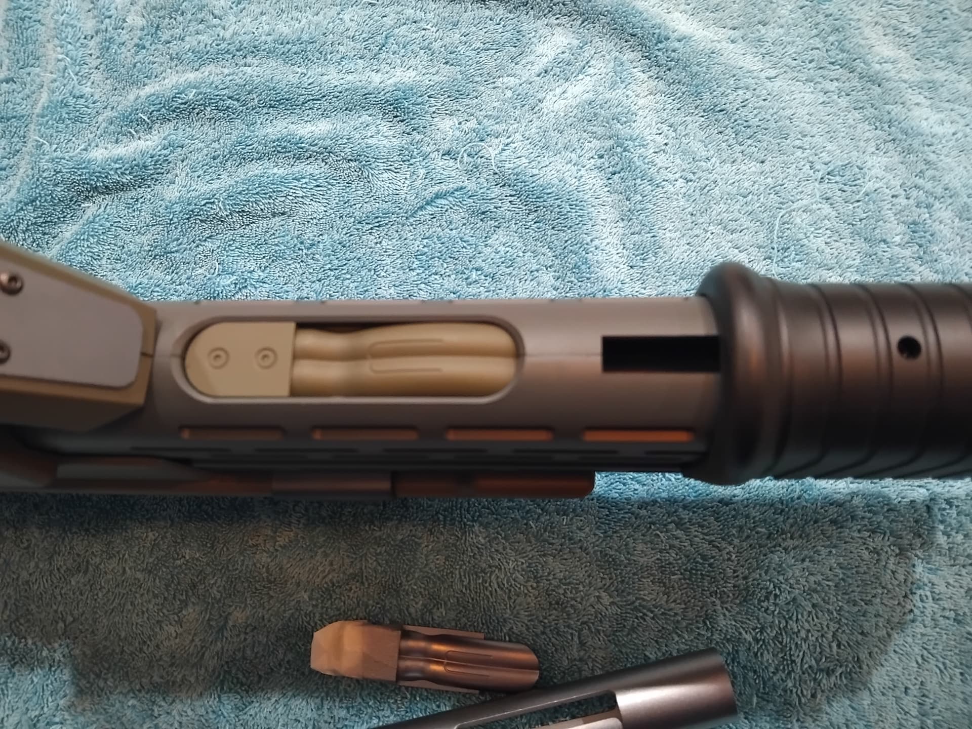 Also, for next time… i might use some tamiya gun metal grey, on the underneath grenade loader port, and the visible silver shottie pump cover.