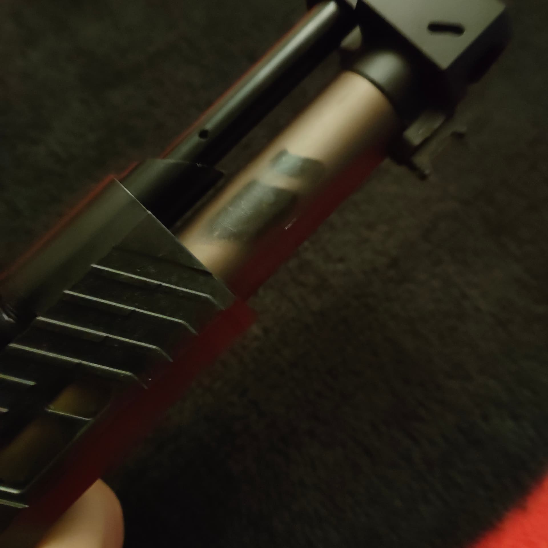 Unfortunately the mag lips are broken so need to replace those, also he tried to spray paint the white writing off of it and it’s gone on the outer barrel through the holes in the slide, I think the mag must’ve been inserted when he did it as there appears so be some traces of the paint on the mag as well