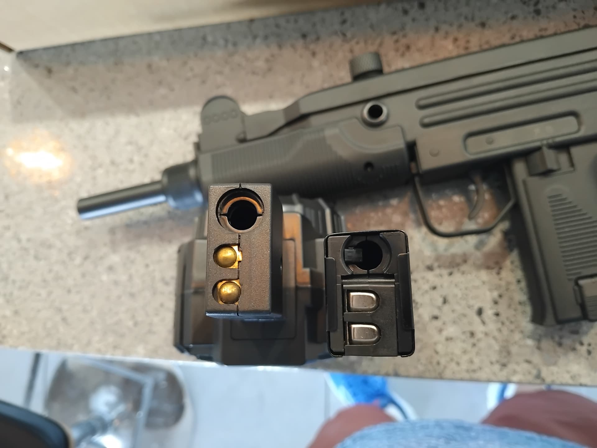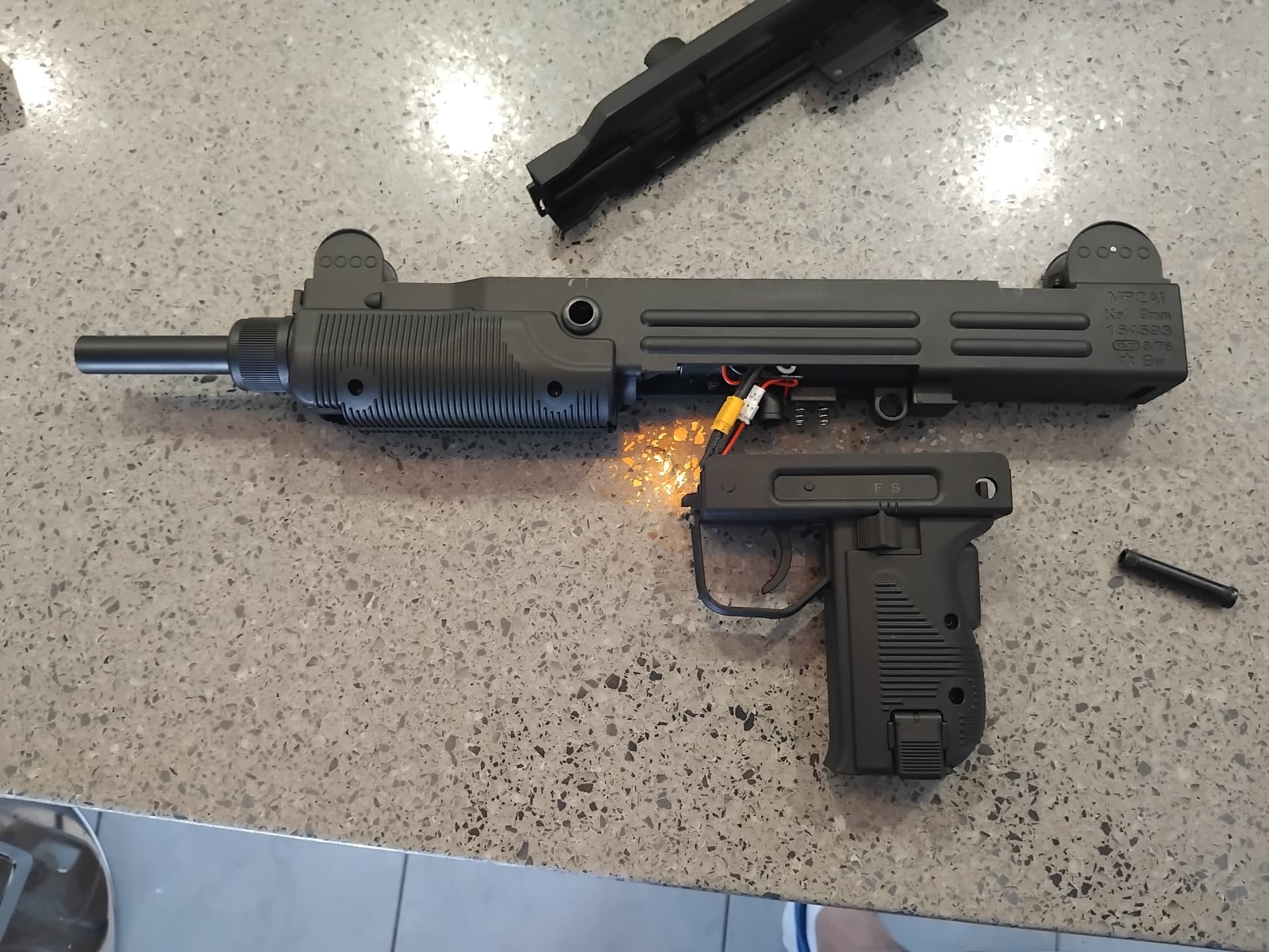 The real uzi is all metal, so F/Fires has the edge there.