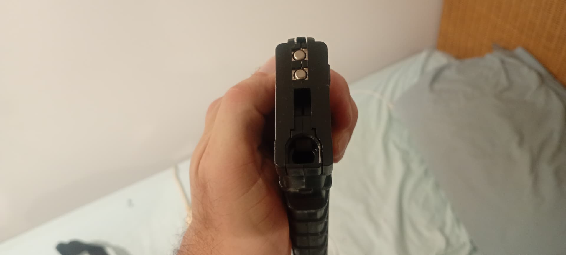 Then I stuffed a 7mm hard foam bb down barrel with barrel cleaning stick Instead of 7.3mm gel . Pew. If flew out. Haven’t tested the mag yet. I’m growing some 7mm gels. Don’t want to fill mag with foam bbs .