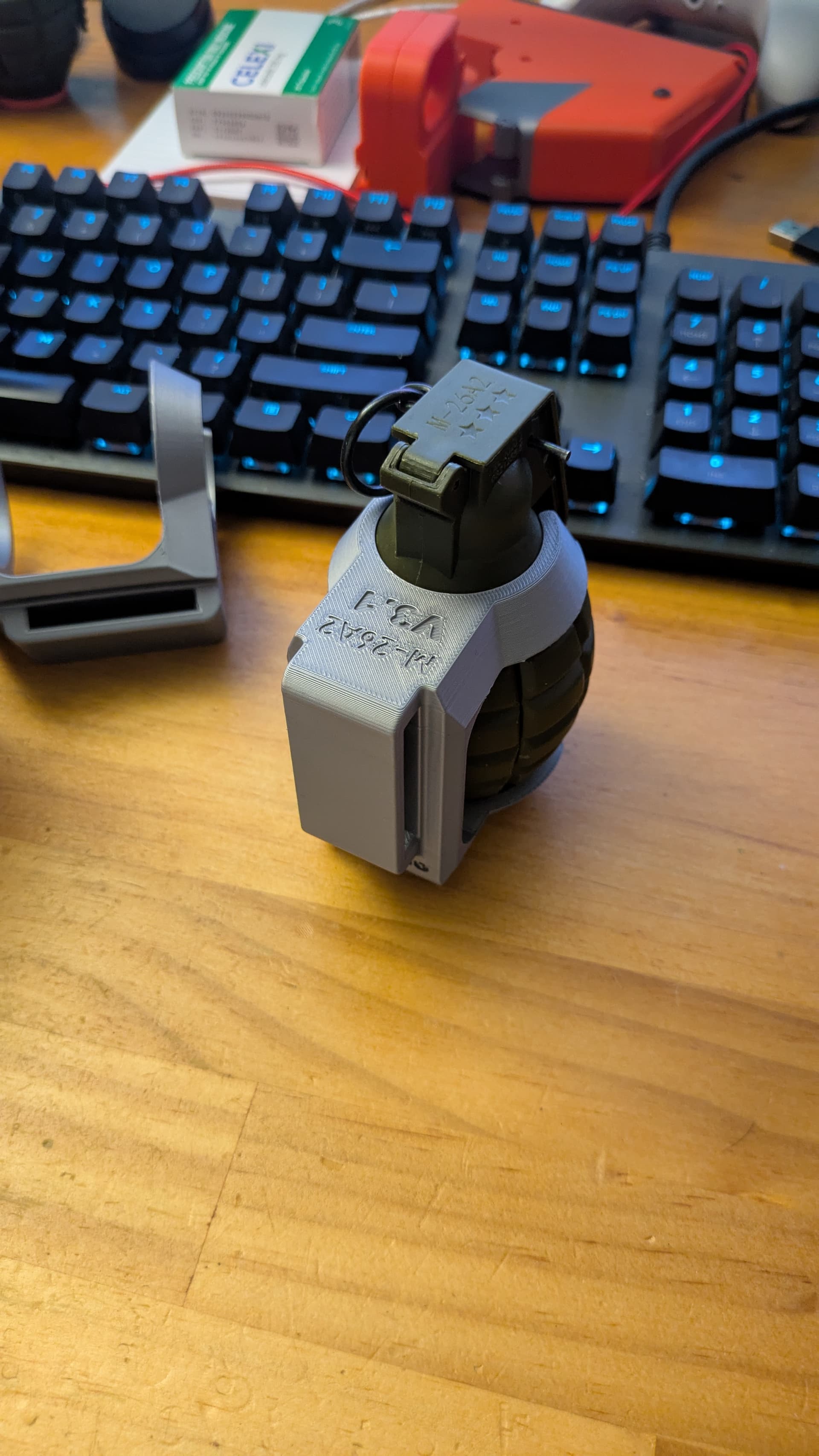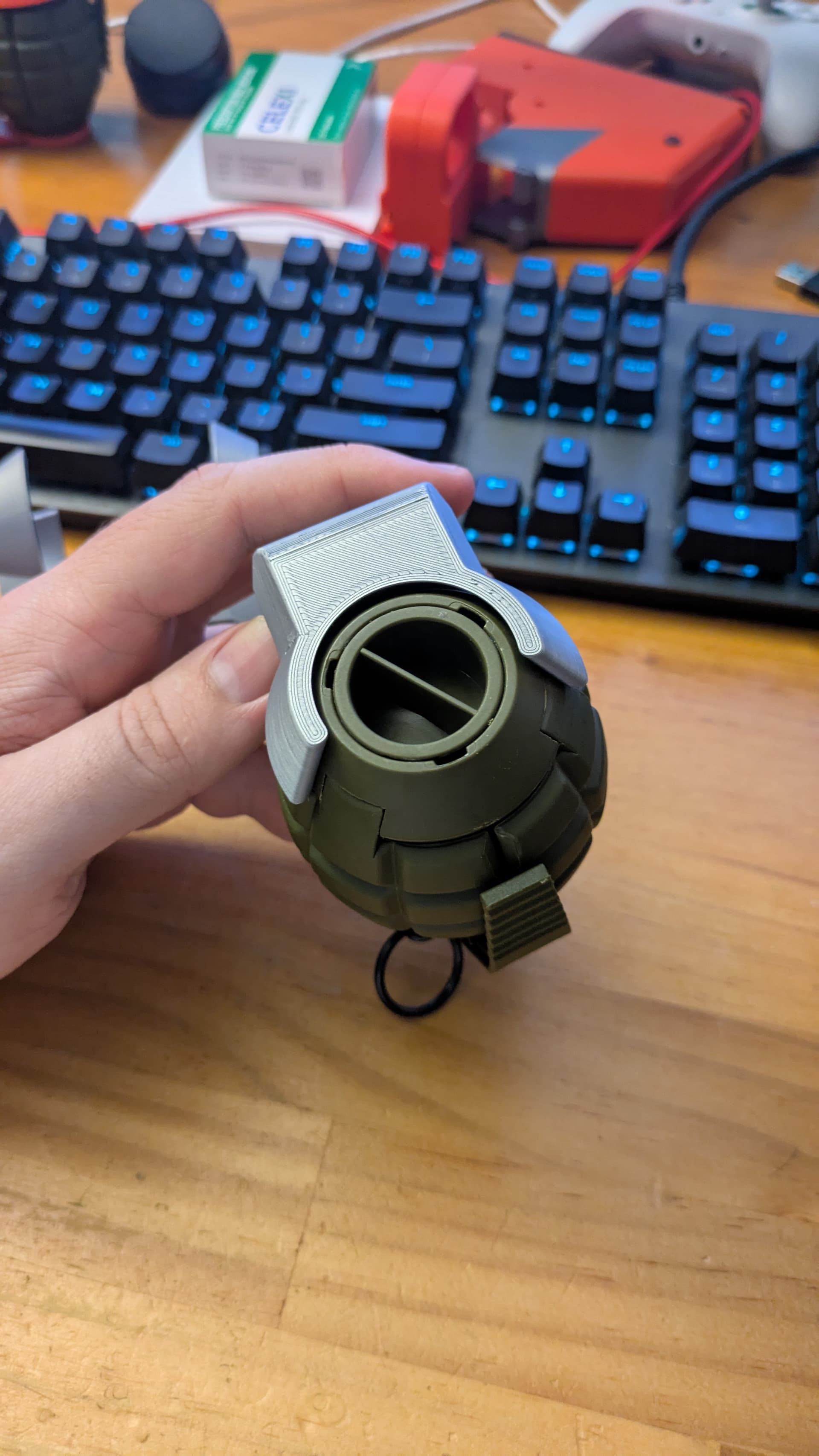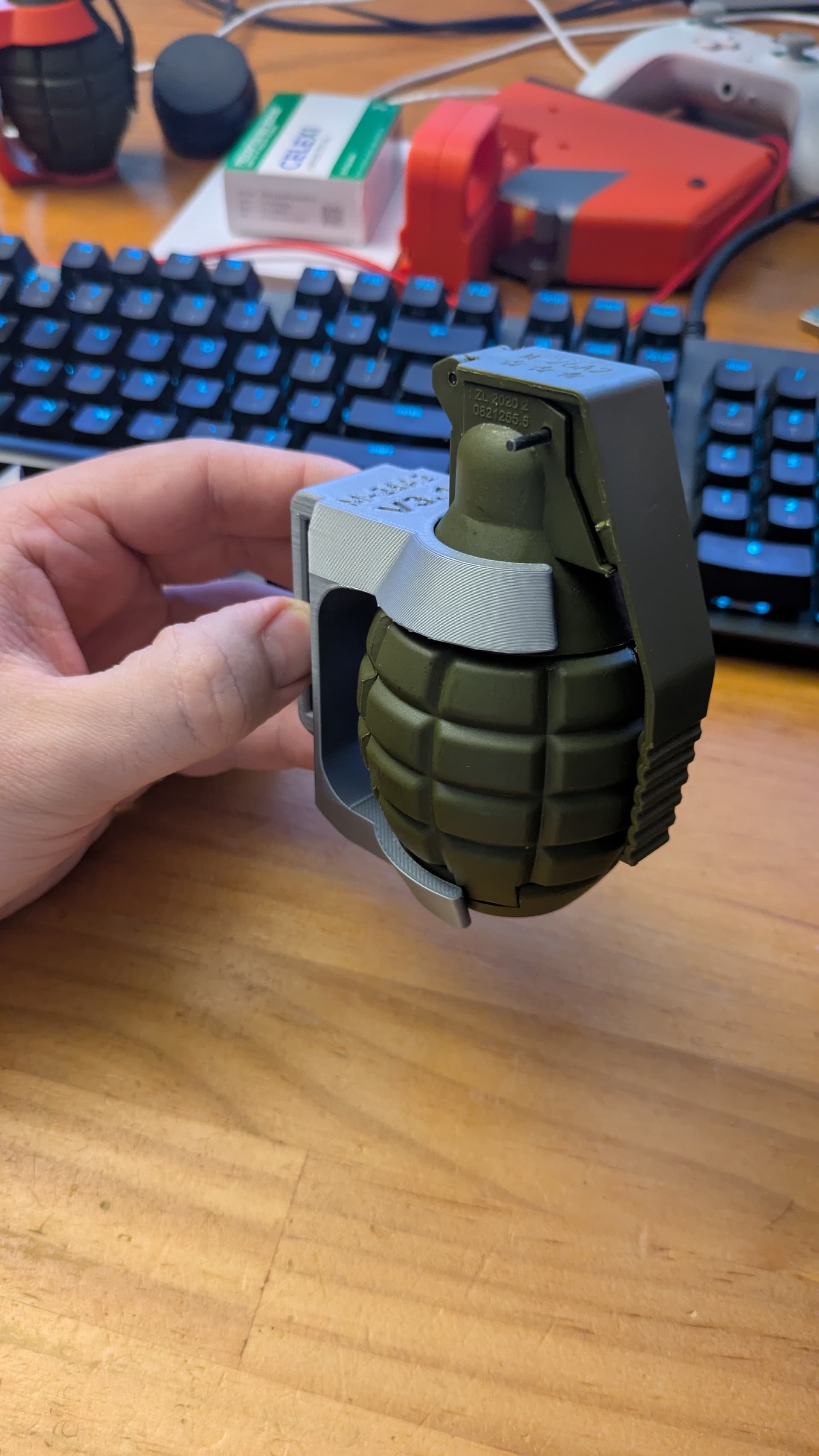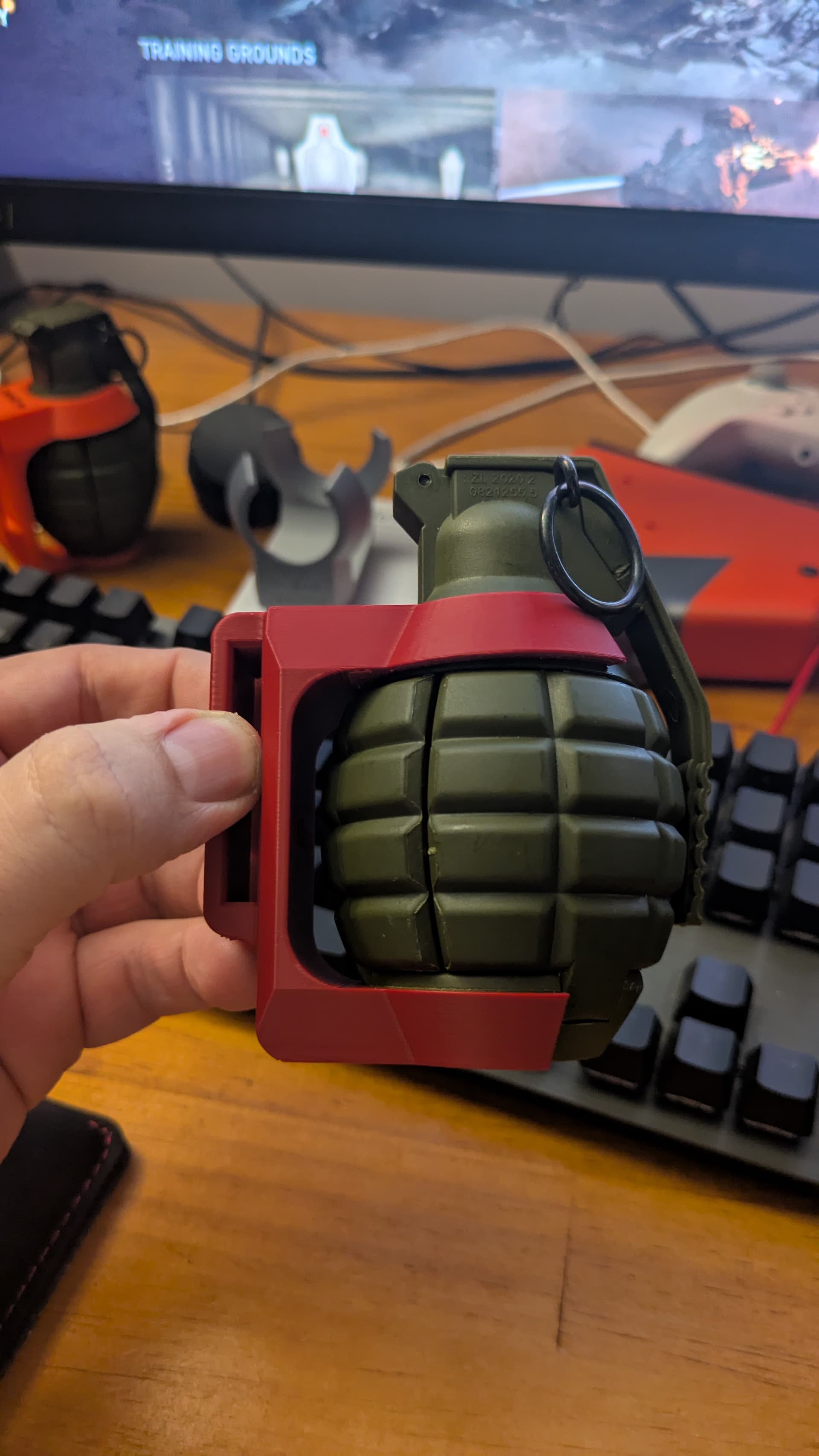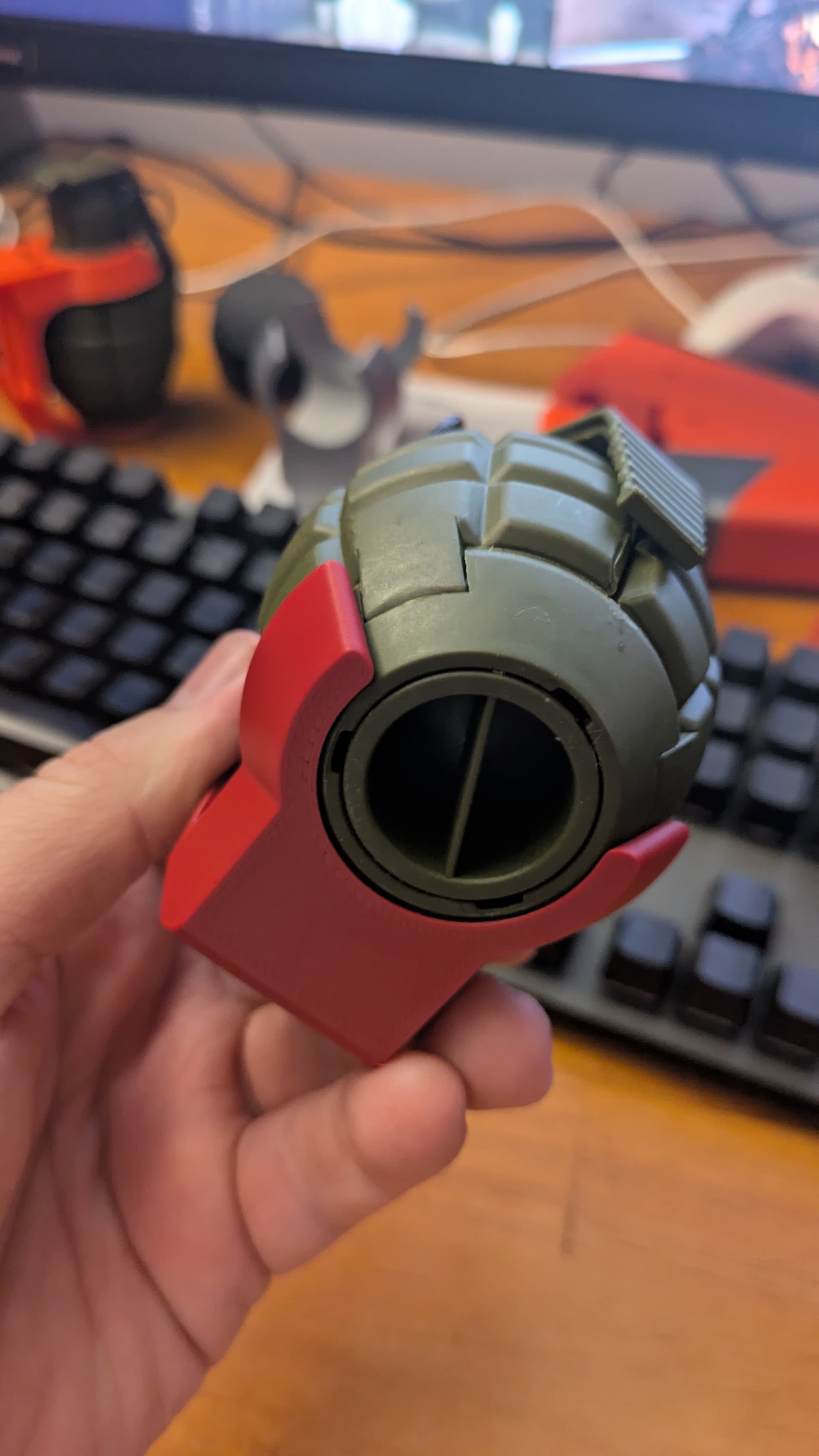 The distance between the top and bottom shoulders of the nade was like 45.5mm (from memory) and I’ve modeled it so the matching gap was 46.5mm so theoretically it should be loose…but it’s not… Or at least not in the way I thought it should be.