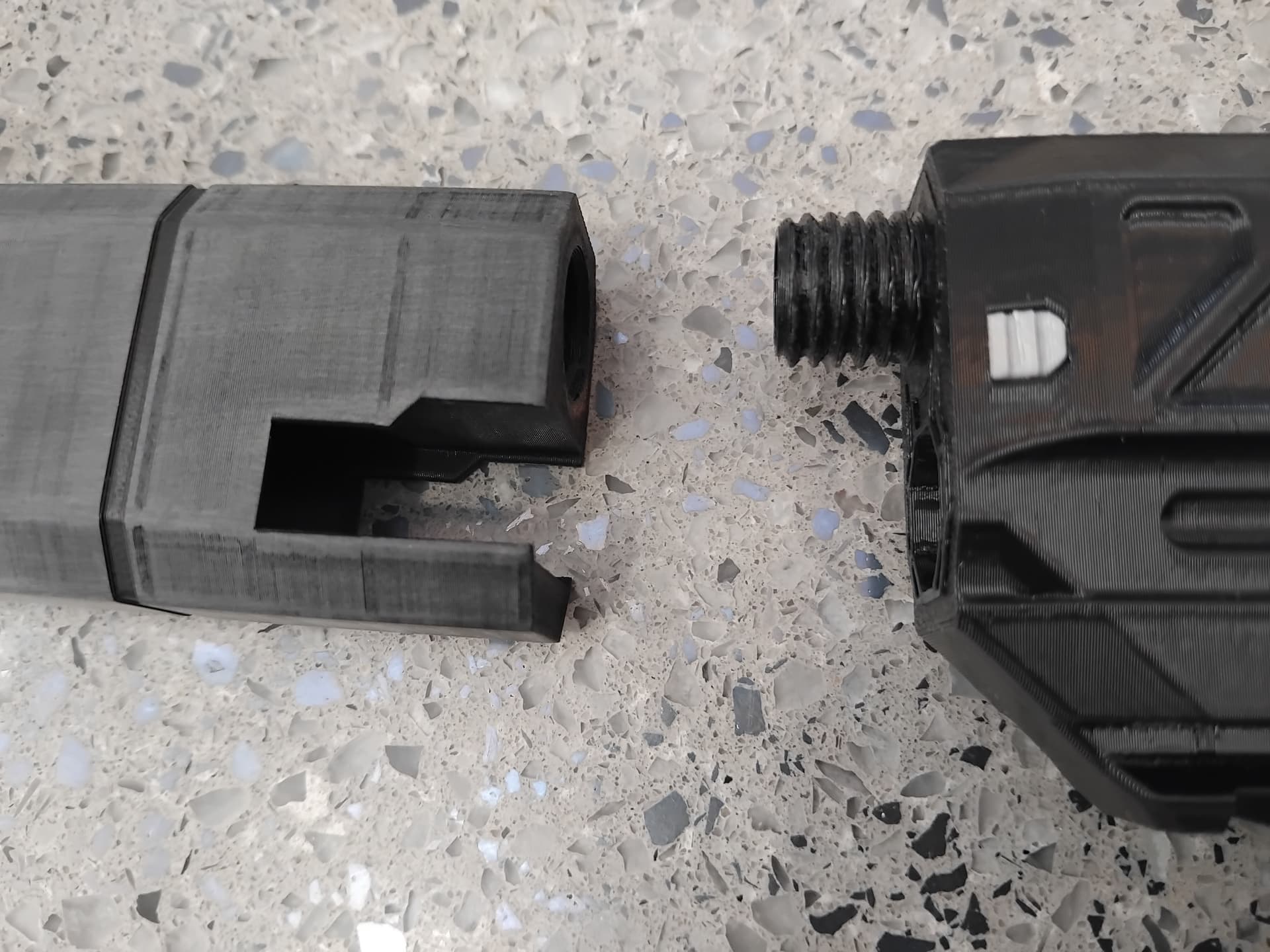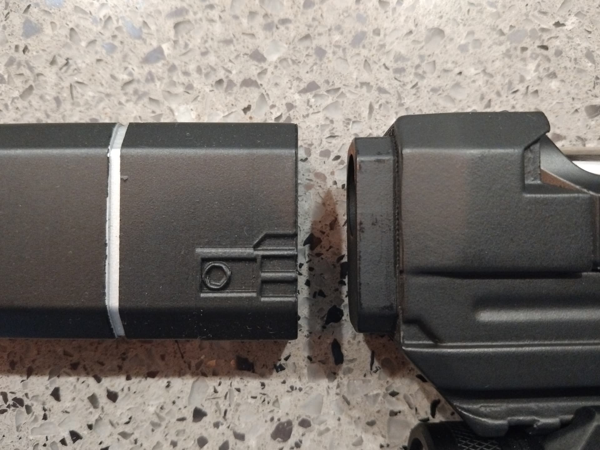 The slide is super stiff ( cerakoted bulked up) and will need some relieving, for better cocking. i’ll have to epoxy the supp, to the L nozzle.