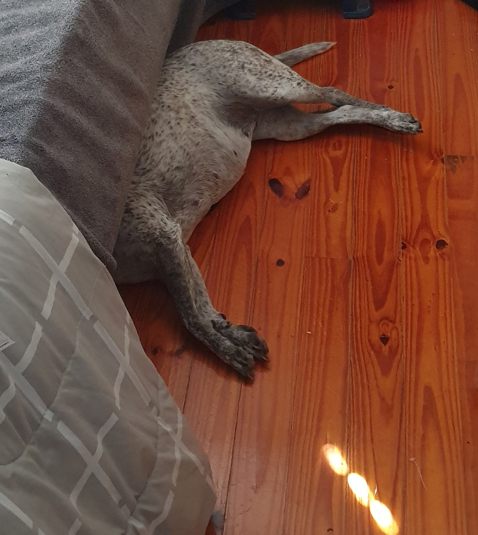 Here she is rounding up all the fluff fleece under the sister-in-law’s bed. ![]()