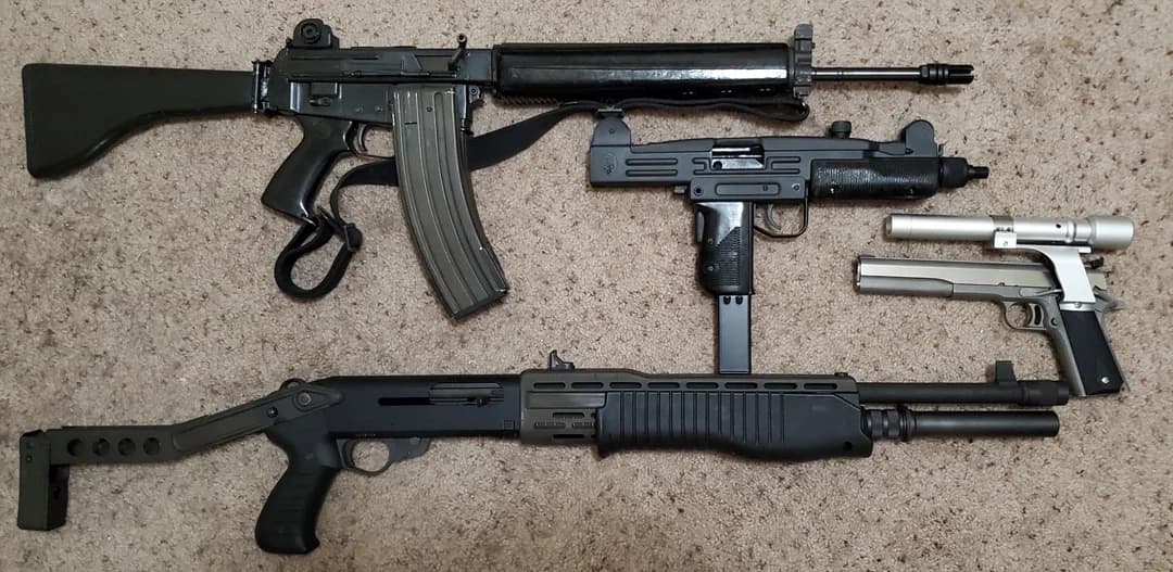 seven folding buttstocks,