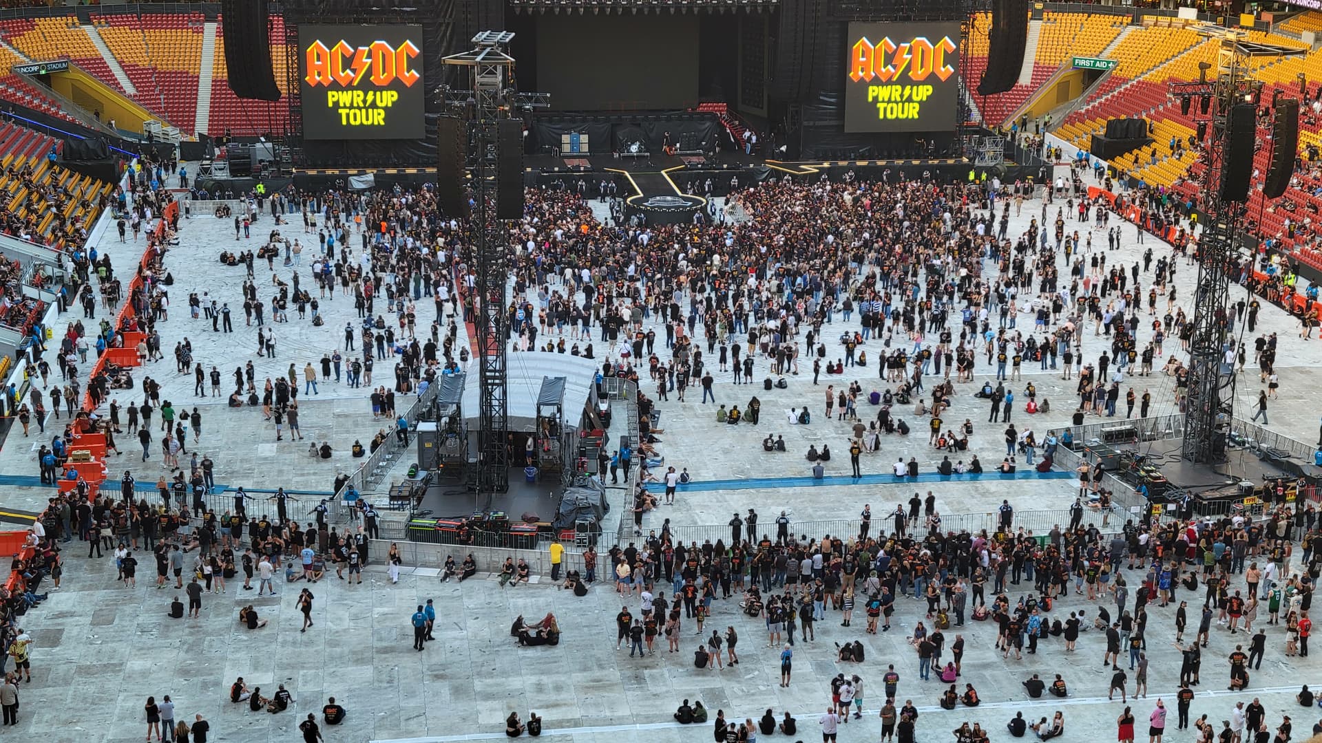 I kept looking down into the crowd thinking “Wish I was down there.” Then when we were down at the front packed in like sardines at AC/DC I kept looking back up at the nosebleed section thinking “Wish I was back up there.” ![]()