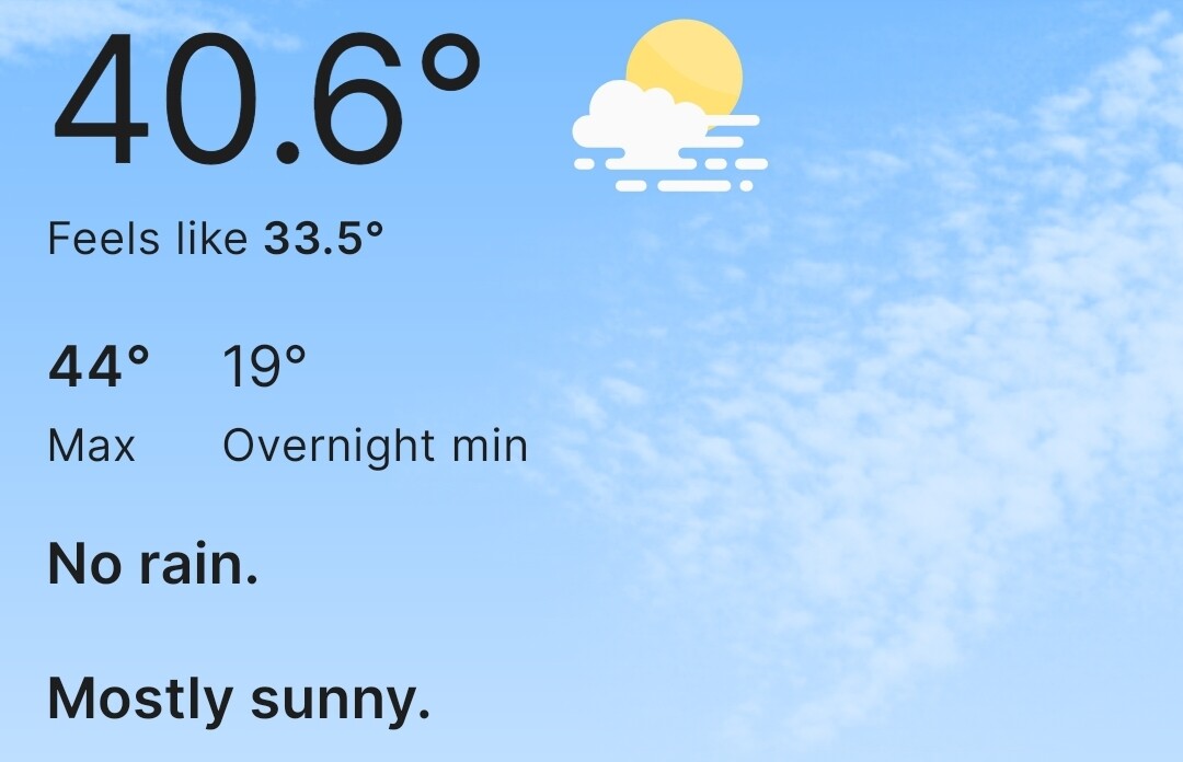 It’s actually only 38c atm but very windy where I am, I’ll take it.